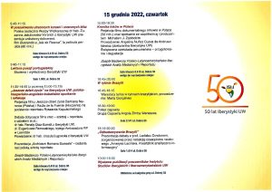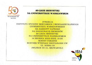 Następnie skok w najbliższe nam lata, a konkretnie 2023: impreza organizowana cyklicznie przez studentów w ramach działalności rozrywkowo-artystycznej, czyli Wielka Iberystyczna Wigilia Artystyczna, 2023, odbywająca się po raz pierwszy nie na ul. Oboźnej, lecz w nowej siedzibie Instytutu przy ul. Dobrej 55.