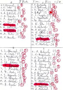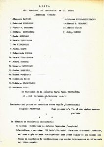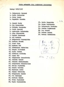 Następnie mamy listę pracowników Katedry w roku akademickim 1977/78 oraz roboczą listę obecności studentów III roku na lektoracie języka hiszpańskiego w roku ak. 1976/77, prowadzonym przez ówczesnego magistra Kazimierza Sabika, z zaznaczeniem nazwisk późniejszych wybitnych absolwentów, wymienionych na końcu tej podstrony.