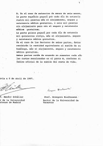 Następne trzy pozycje dotyczą dwóch umów o współpracy między UW i Universidad Complutense de Madrid (UCM), z 1983 i 1987 r., z konkretnymi propozycjami tematów współpracy z Katedrą Iberystyki. Istotną rolę w nawiązaniu kontaktów i podpisaniu umów odegrał pracujący wówczas na Wydziale Filologii UCM jako wykładowca języka i kultury polskiej dr Kazimierz Sabik, który poza tym doprowadził do wskrzeszenia lektoratu języka i kultury polskiej na UCM po wielu latach nieobecności.