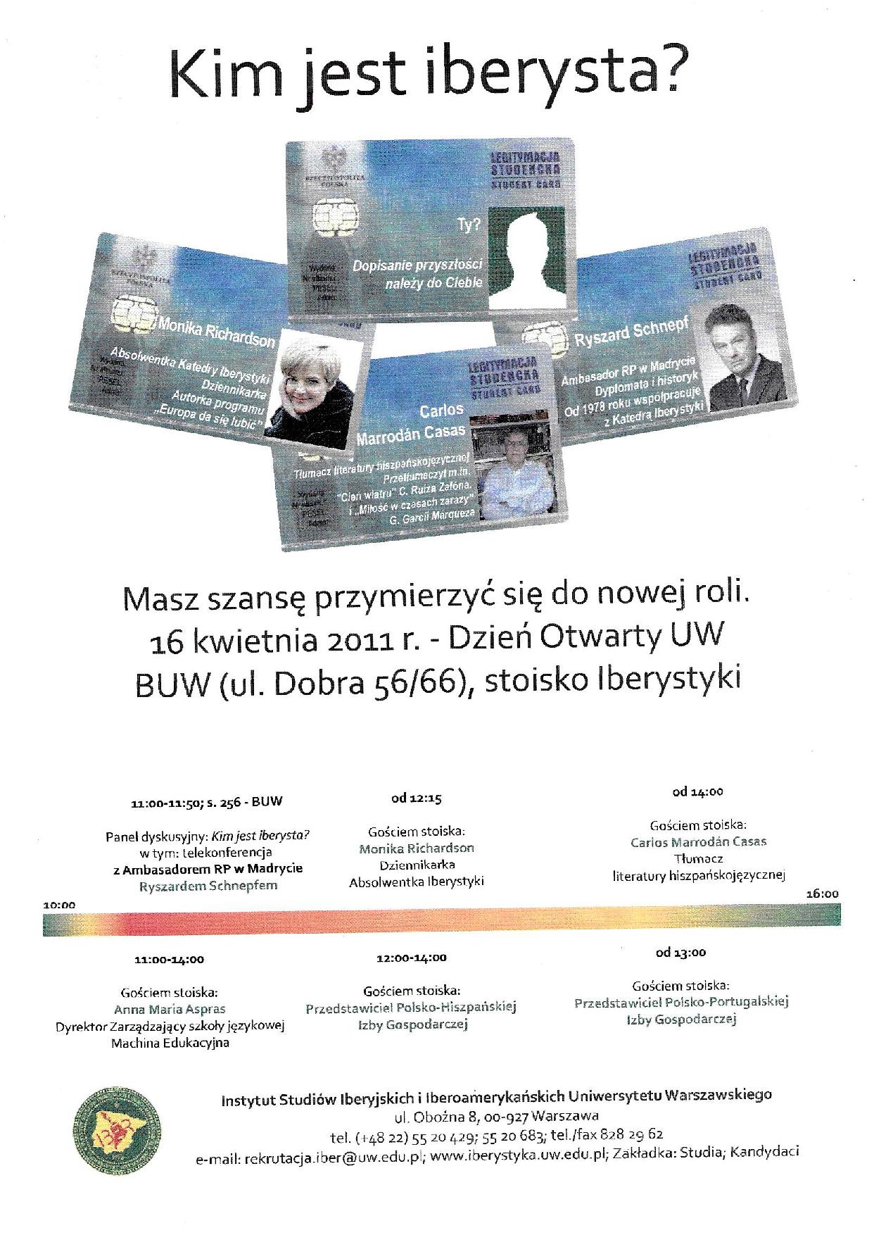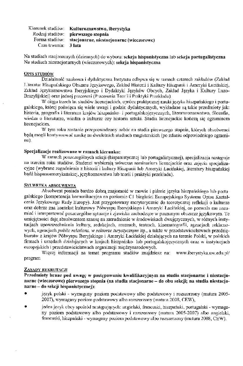 Kolejne pozycje przedstawiają opis rekrutacji na Iberystykę, już jako Instytut od 2000 r., i ulotkę informacyjną podczas Dnia Otwartego UW w kwietniu 2011 r.