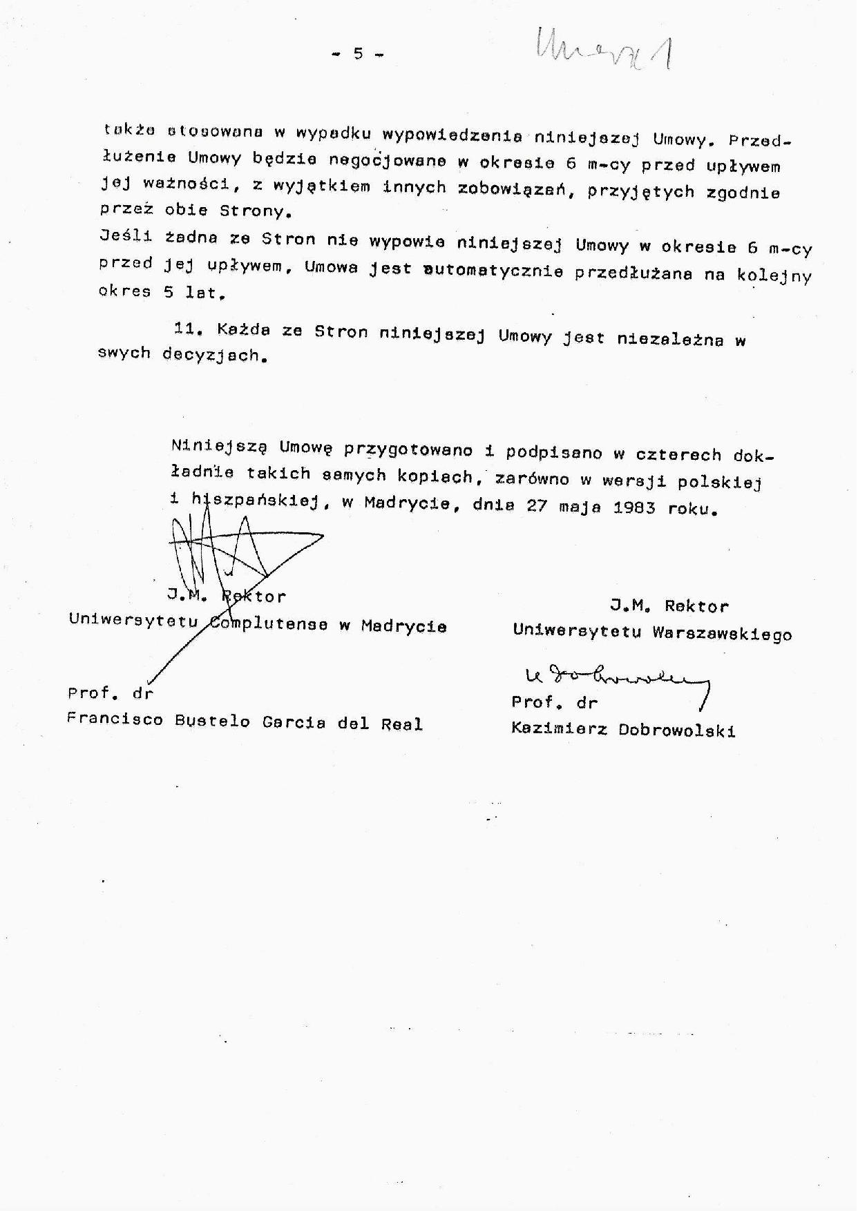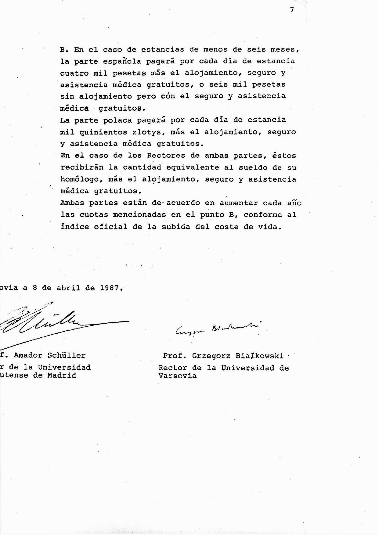 Następne trzy pozycje dotyczą dwóch umów o współpracy między UW i Universidad Complutense de Madrid (UCM), z 1983 i 1987 r., z konkretnymi propozycjami tematów współpracy z Katedrą Iberystyki. Istotną rolę w nawiązaniu kontaktów i podpisaniu umów odegrał pracujący wówczas na Wydziale Filologii UCM jako wykładowca języka i kultury polskiej dr Kazimierz Sabik, który poza tym doprowadził do wskrzeszenia lektoratu języka i kultury polskiej na UCM po wielu latach nieobecności.