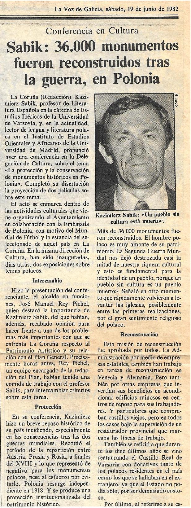Hitem wśród tych wydarzeń był udział w mistrzostwach świata w piłce nożnej w roku 1982, odbywającymi się w Hiszpanii (Mundial 82),w którym skądinąd reprezentacja Polski zajęła trzecie miejsce. Nie był to oczywiście start jako piłkarz, lecz wykład w ramach programu imprez kulturalnych związanych z Mundialem, konkretnie w galisyjskim mieście La Coruña, 19 czerwca 1982 r., w pierwszej fazie Mundialu.