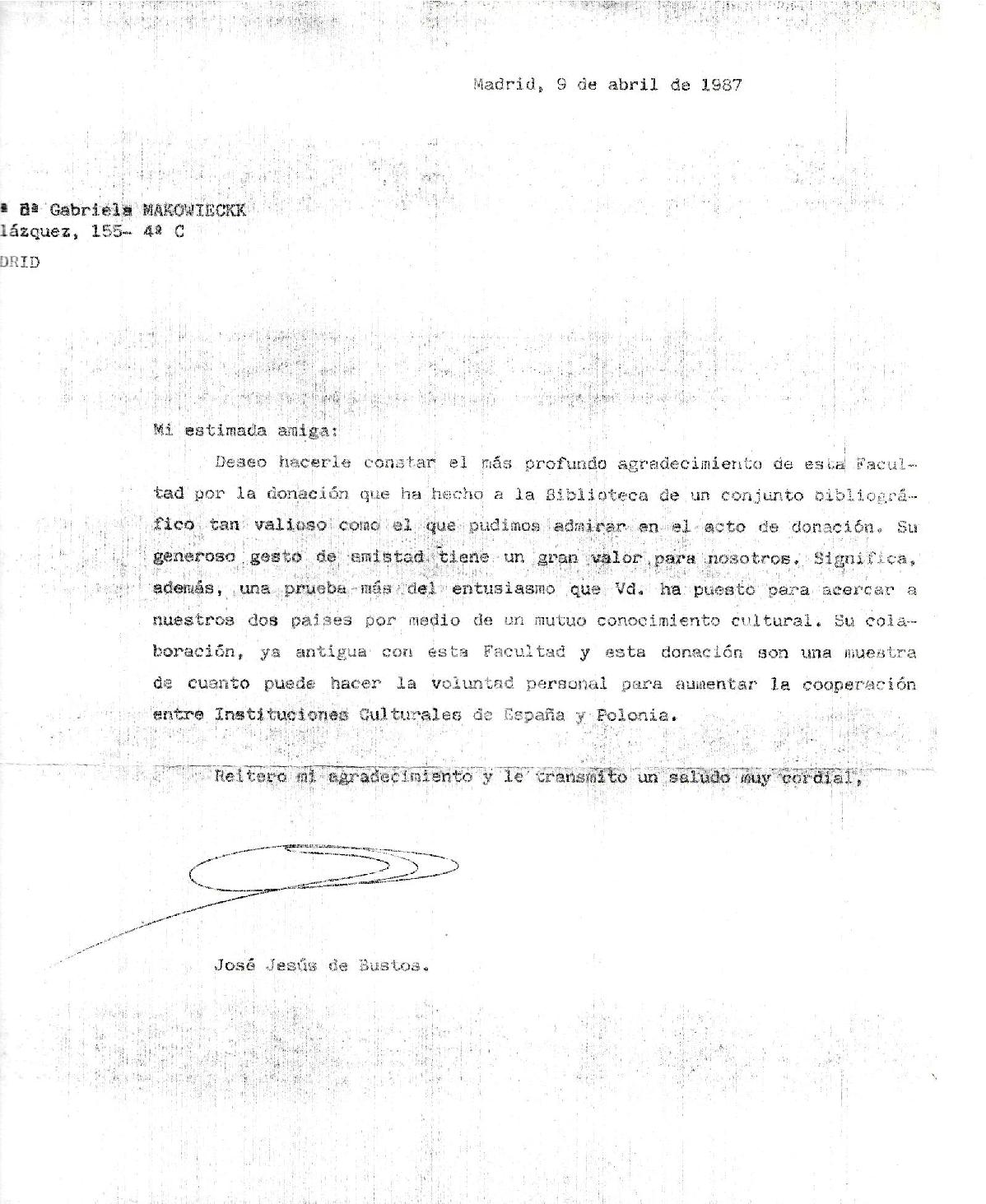 Pięknym gestem wieńczącym zasługi Pani Profesor było uroczyste przekazanie jej polonistycznej biblioteki Wydziałowi Filologii UCM. Załączamy zdjęcie listu dziękczynnego Dziekana tego Wydziału i fotografię z ceremonii przekazania , w obecności, m.in.,JE Ambasadora RP w Madrycie.