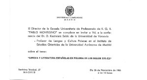 Był to też, nota bene, ważny krok do powstania istniejącej obecnie slawistyki na UCM, której polonistyka jest bardzo ważnym elementem (patrz pozycje dot. „Jornadas Eslavas” z 1986 i 1988).