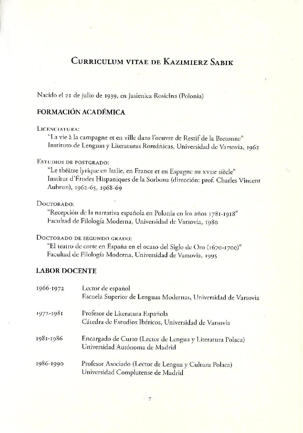 Polecamy zapoznanie się z pozycją pt.” Biografia” w języku polskim i „Curriculum vitae de Kazimierz Sabik” w języku hiszpańskim. Szczegółowe opisy znajdą Państwo na pierwszej stronie internetowej: www.sabik.pl (Strona Główna).