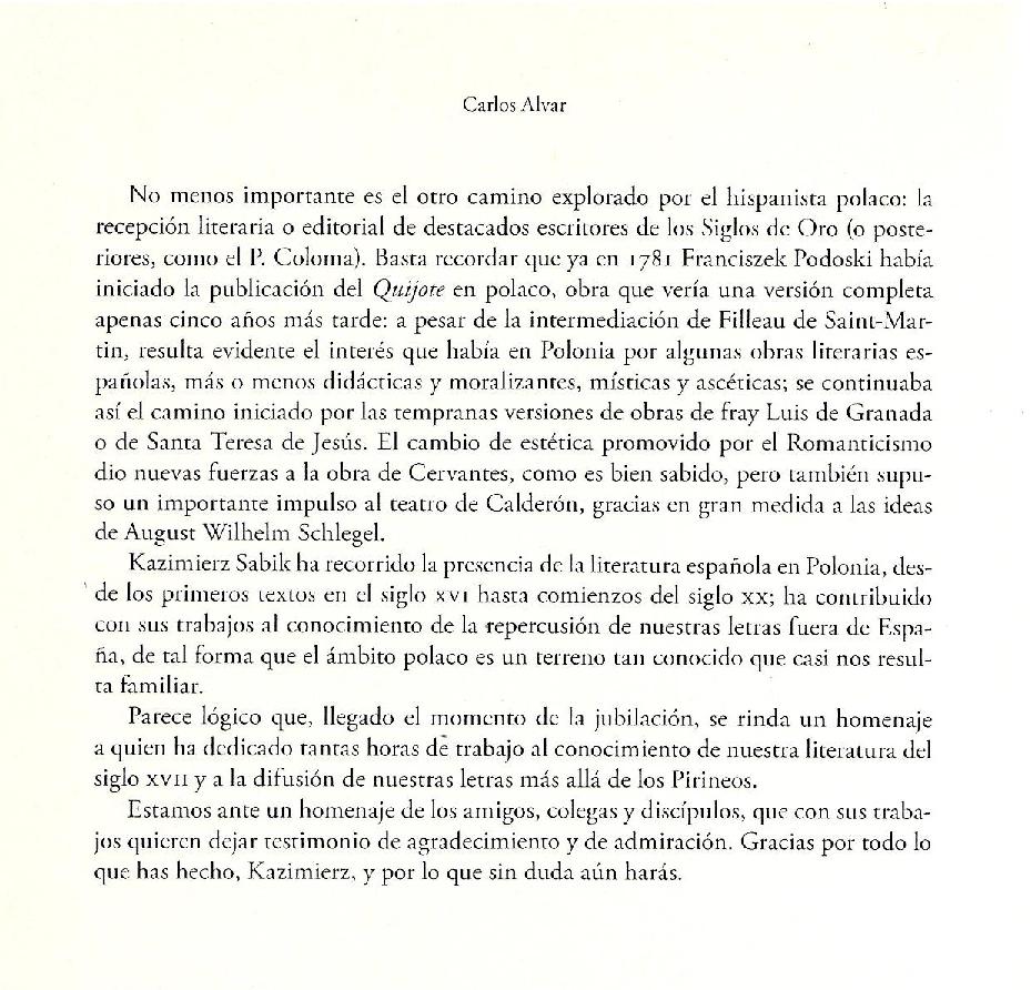 Dodajmy na koniec, że Profesor reprezentował Polskę w Consejo General del Hispanismo, organizacji skupiającej najwybitniejszych hispanistów z całego świata oraz że w uznaniu jego zasług na niwie hispanistycznej zostały mu poświęcone dwa tomy „Homenajes” z okazji kongresów w 2009 i 2016 r.