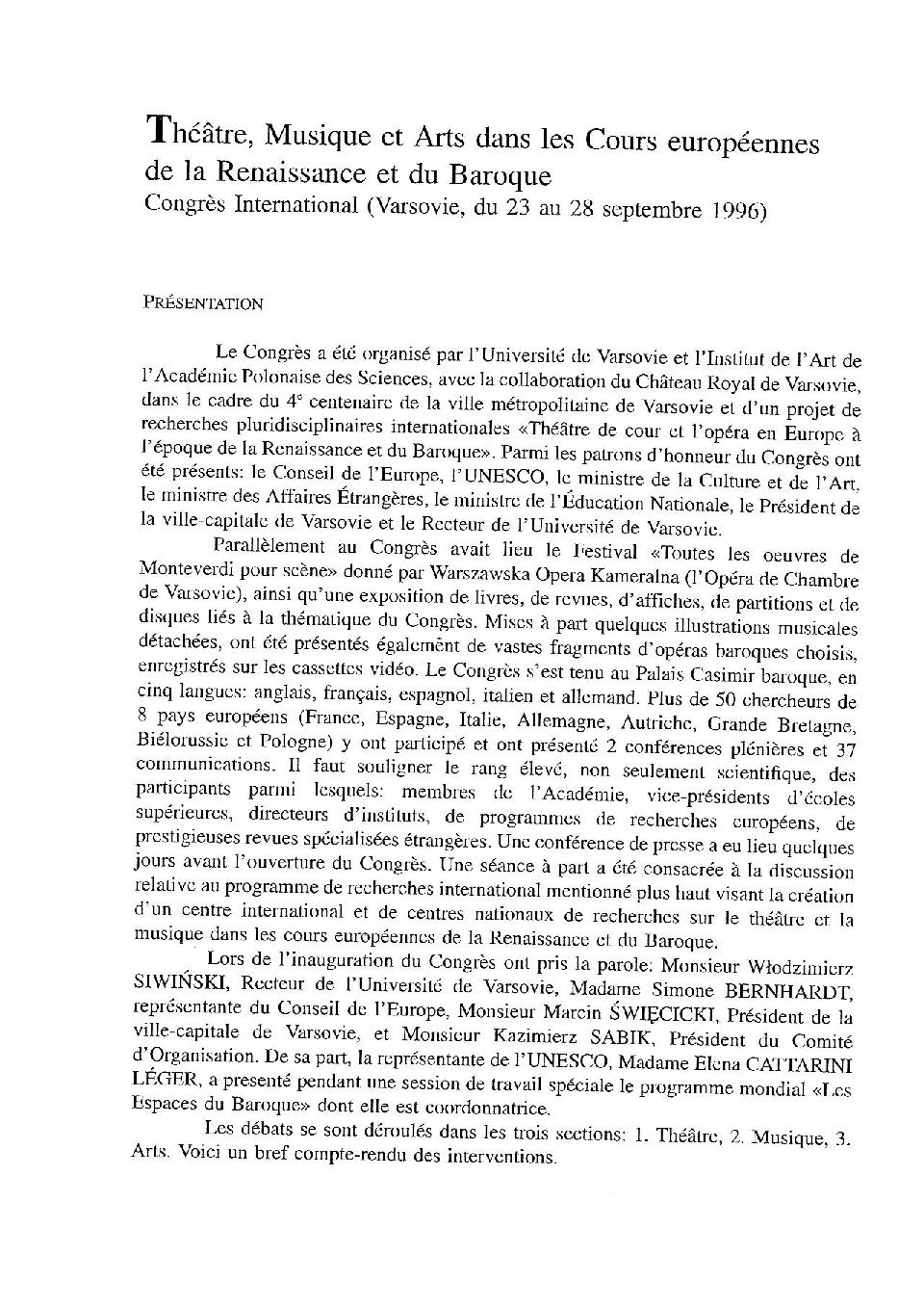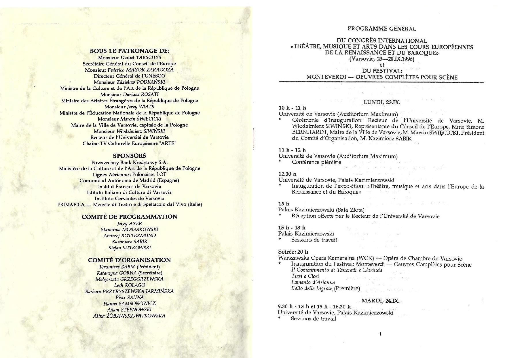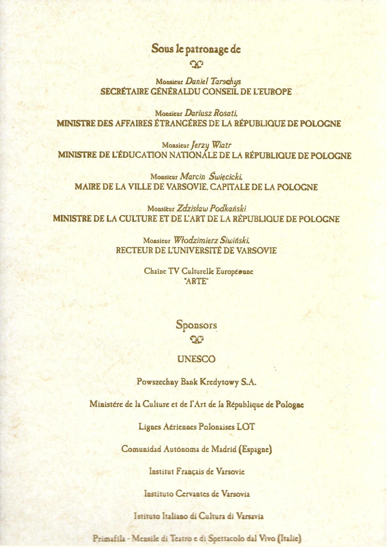 Profesor zorganizował w Warszawie trzy ważne międzynarodowe kongresy: w 1996, 2009 i 2016 r., pod patronatem tak prestiżowych instytucji jak, m.in., UNESCO czy Rada Europy, którym to kongresom towarzyszyły niespotykane na innych zagranicznych wydarzenia artystyczne: festiwale operowe (np. w 1996 r. festiwal oper i dzieł scenicznych Monteverdiego), koncerty i wystawy.