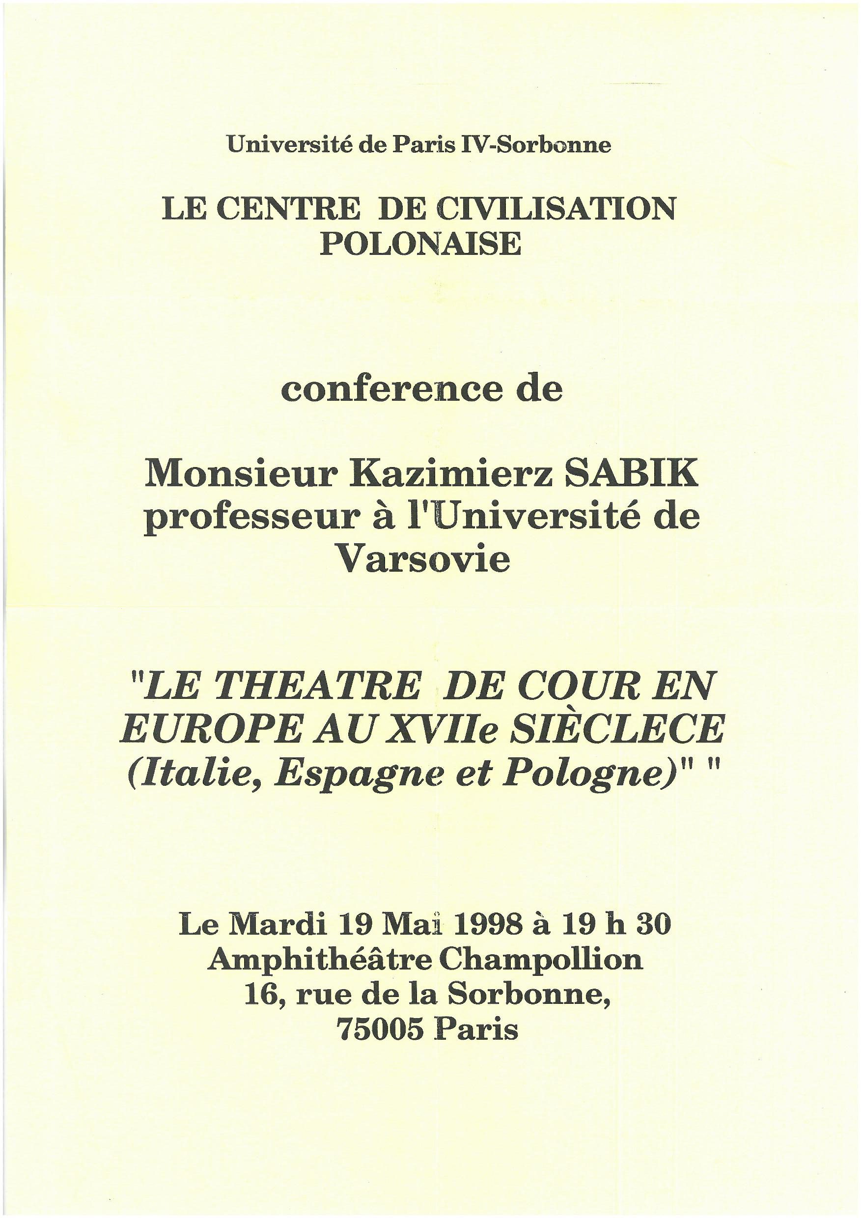 Na zaproszenie międzynarodowych instytucji naukowych i kulturalnych Profesor wygłosił , w kilkunastu krajach Europy, obydwu Ameryk i Afryki (Gwinea Równikowa, dawna kolonia hiszpańska),pojedyncze bądź cykliczne, jak w przypadku Włoch, Wielkiej Brytanii i Meksyku, wykłady oraz prowadził seminaria w tak prestiżowych instytucjach naukowych jak najważniejsza w Hiszpanii Consejo Superior de Investigaciones Científicas (CSIC).