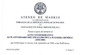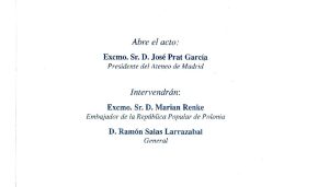 W Madrycie nasze Stowarzyszenie koncentrowało swoją działalność we współpracy z prywatnymi instytucjami, takimi jak „Fundación Fernando Rielo”, ale głównie z instytucją wręcz legendarną w hiszpańskiej nauce i kulturze, założoną już w 1820 r., „Ateneo Científico y Literario”.