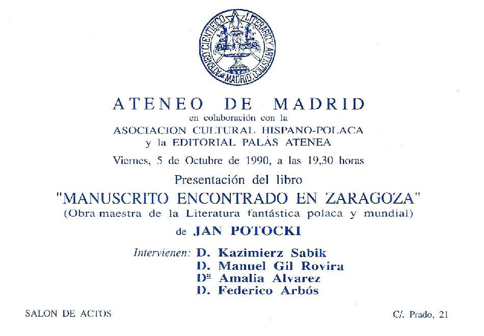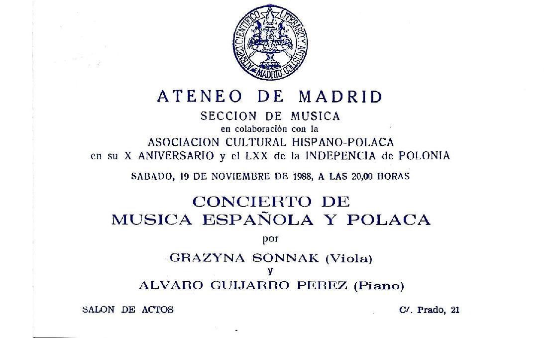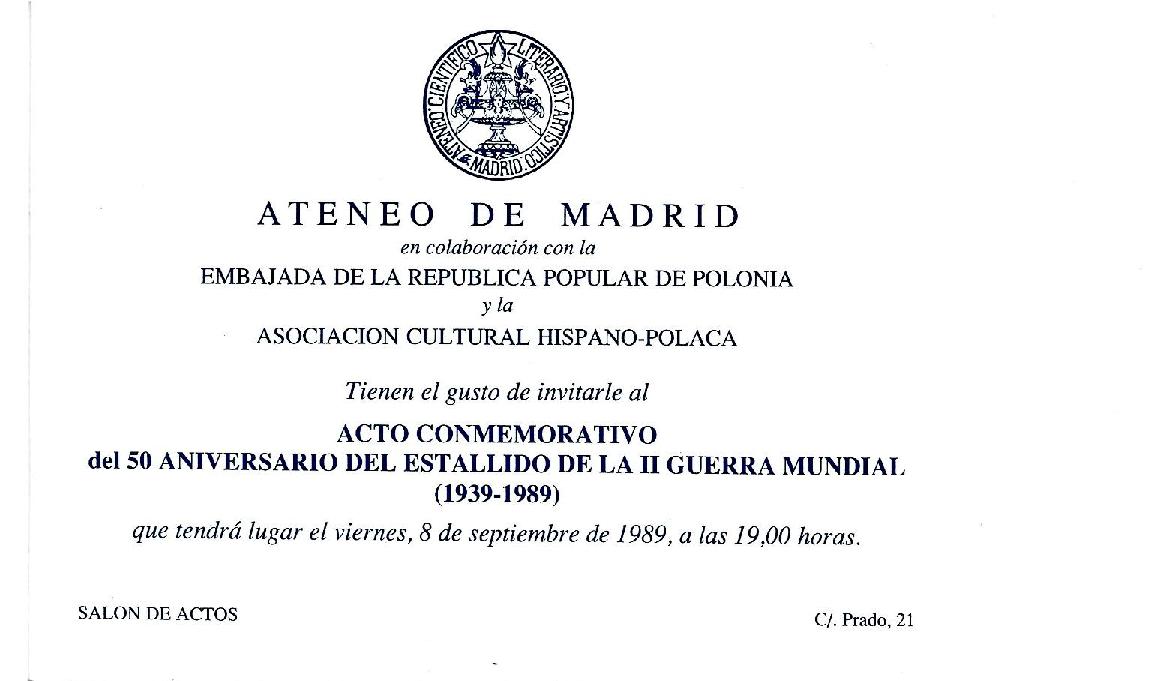 W Madrycie nasze Stowarzyszenie koncentrowało swoją działalność we współpracy z prywatnymi instytucjami, takimi jak „Fundación Fernando Rielo”, ale głównie z instytucją wręcz legendarną w hiszpańskiej nauce i kulturze, założoną już w 1820 r., „Ateneo Científico y Literario”.