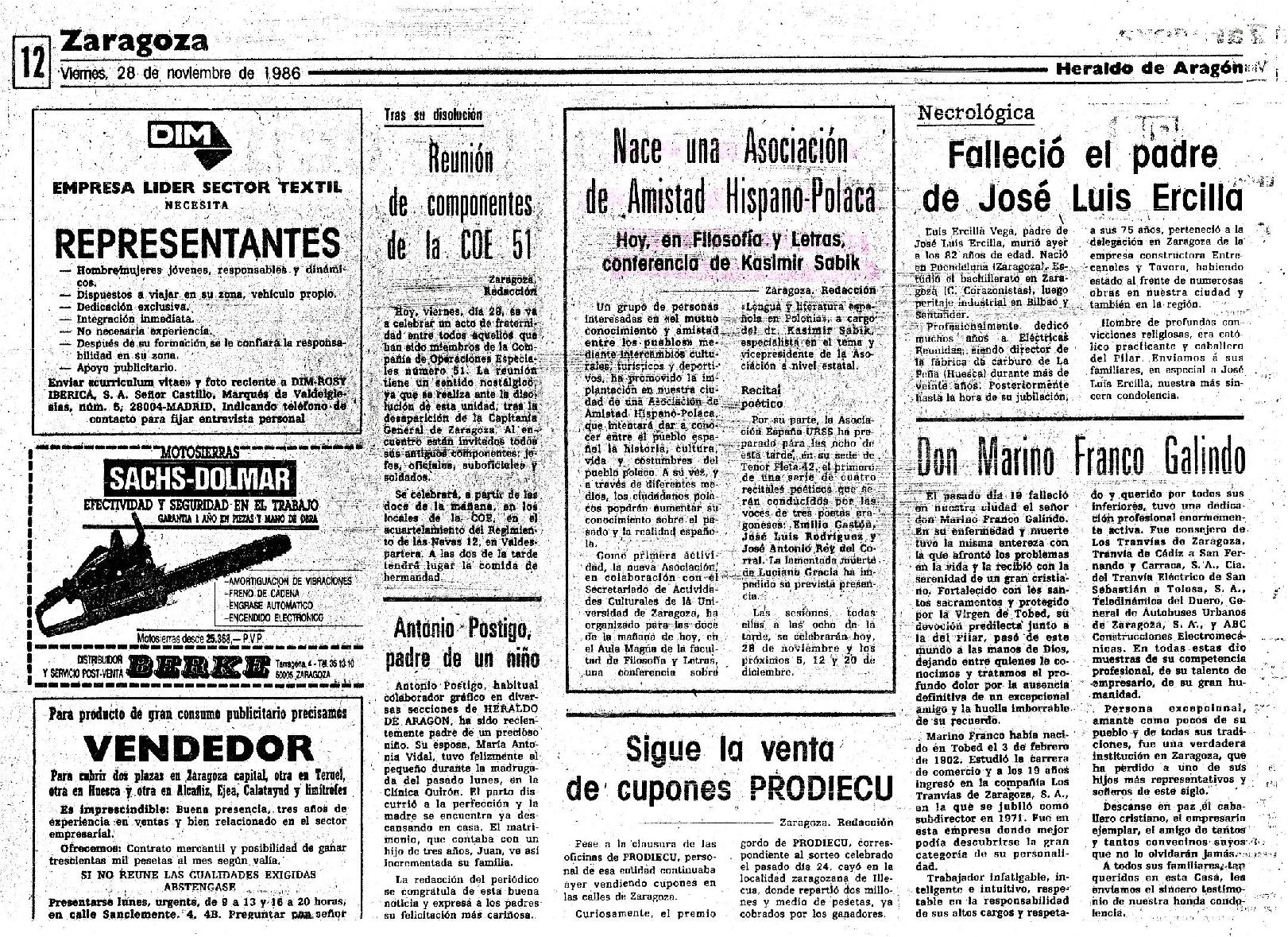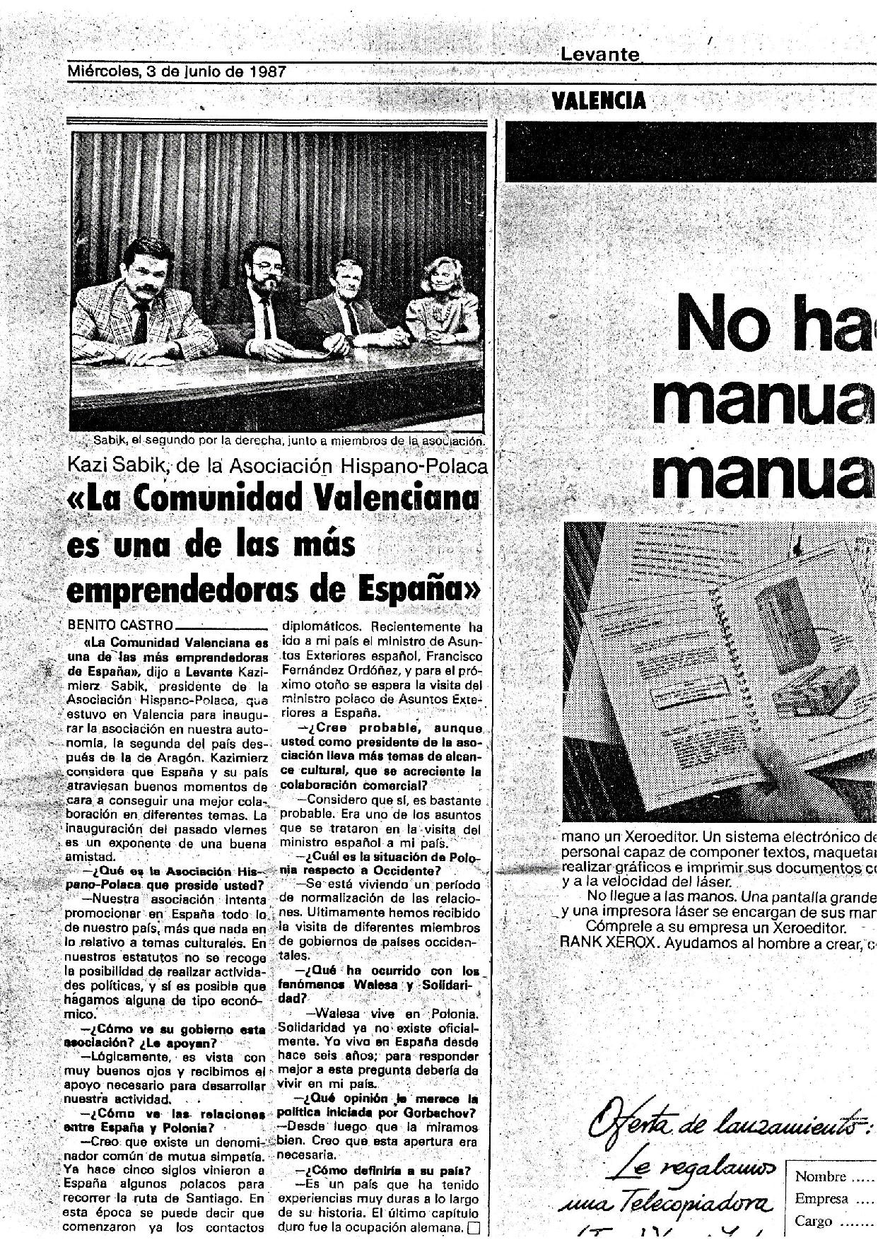 Poczytuję sobie za zasługę, że w okresie mojej działalności jako Prezesa doprowadziłem do założenia trzech nowych stowarzyszeń poza Madrytem, a to w Aragonii (stolica Zaragoza), Walencji i w Kraju Basków (ta pod nazwą „Asociación <Emilia Plater>”w Bilbao.